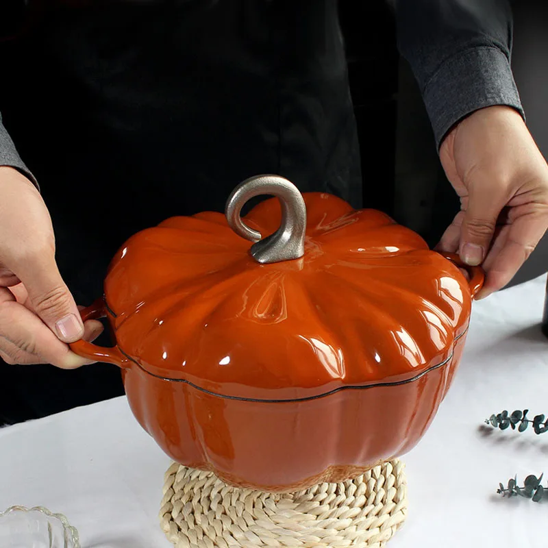 Add a cozy touch to your kitchen with the Cast Iron Pumpkin Dutch Oven (3.5qt). Designed to resemble a plump pumpkin, this dutch oven combines style with function, making it perfect for soups, stews, and slow-cooked meals. Its durable cast iron construction ensures even heat distribution, while the pumpkin-shaped lid adds a charming, decorative detail. Available in either classic orange or vibrant turquoise, this dutch oven is both a practical and stylish addition to your kitchen.