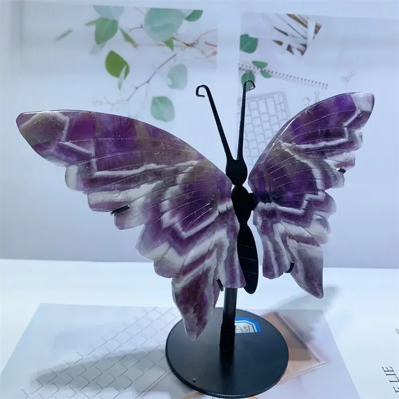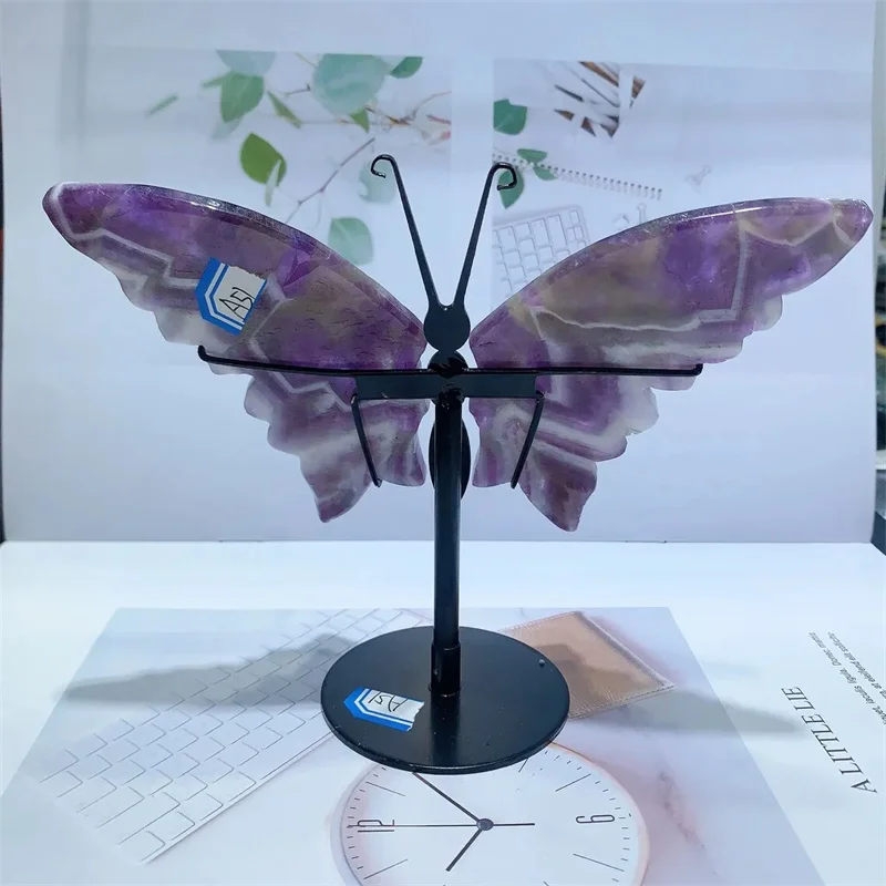 Bring elegance and transformative energy to your space with these crystal butterfly wings, available in five different crystal options. Each pair is crafted from natural stones, showcasing their unique colors and patterns, symbolizing growth, transformation, and balance. Complete with a stand, these butterfly wings are perfect as a captivating centerpiece or a meaningful addition to your sacred space.