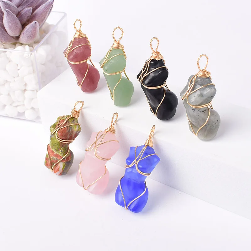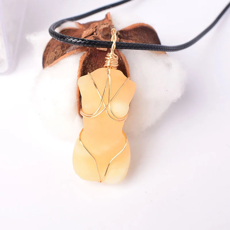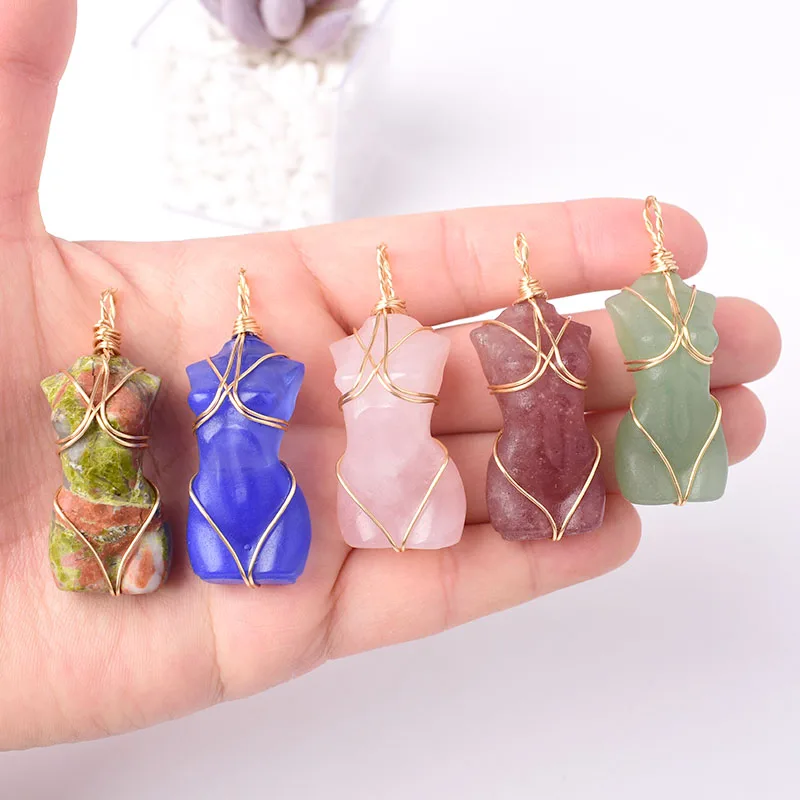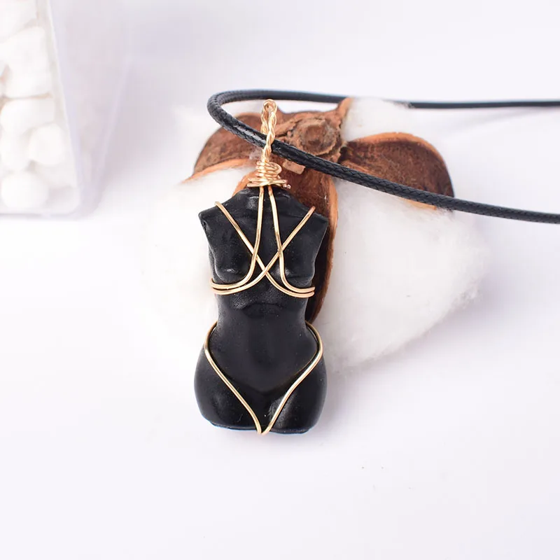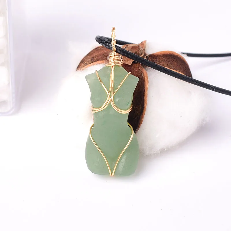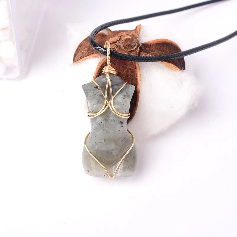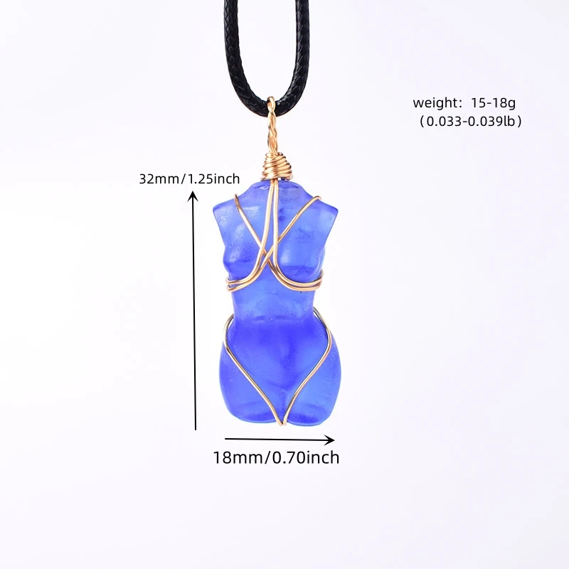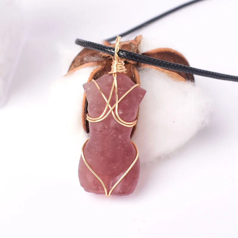 Harness the divine feminine energy with these enchanting wire-wrapped crystal goddess body necklaces, suspended on a sturdy rope cord. Choose the crystal type that resonates with your magical intentions—whether for empowerment, creativity, or protection. The intricate wire wrapping enhances the crystal’s natural beauty and energy, making it a perfect talisman for rituals, spellwork, or daily wear. Wear this necklace as a powerful reminder of your connection to the sacred feminine and the magic within.