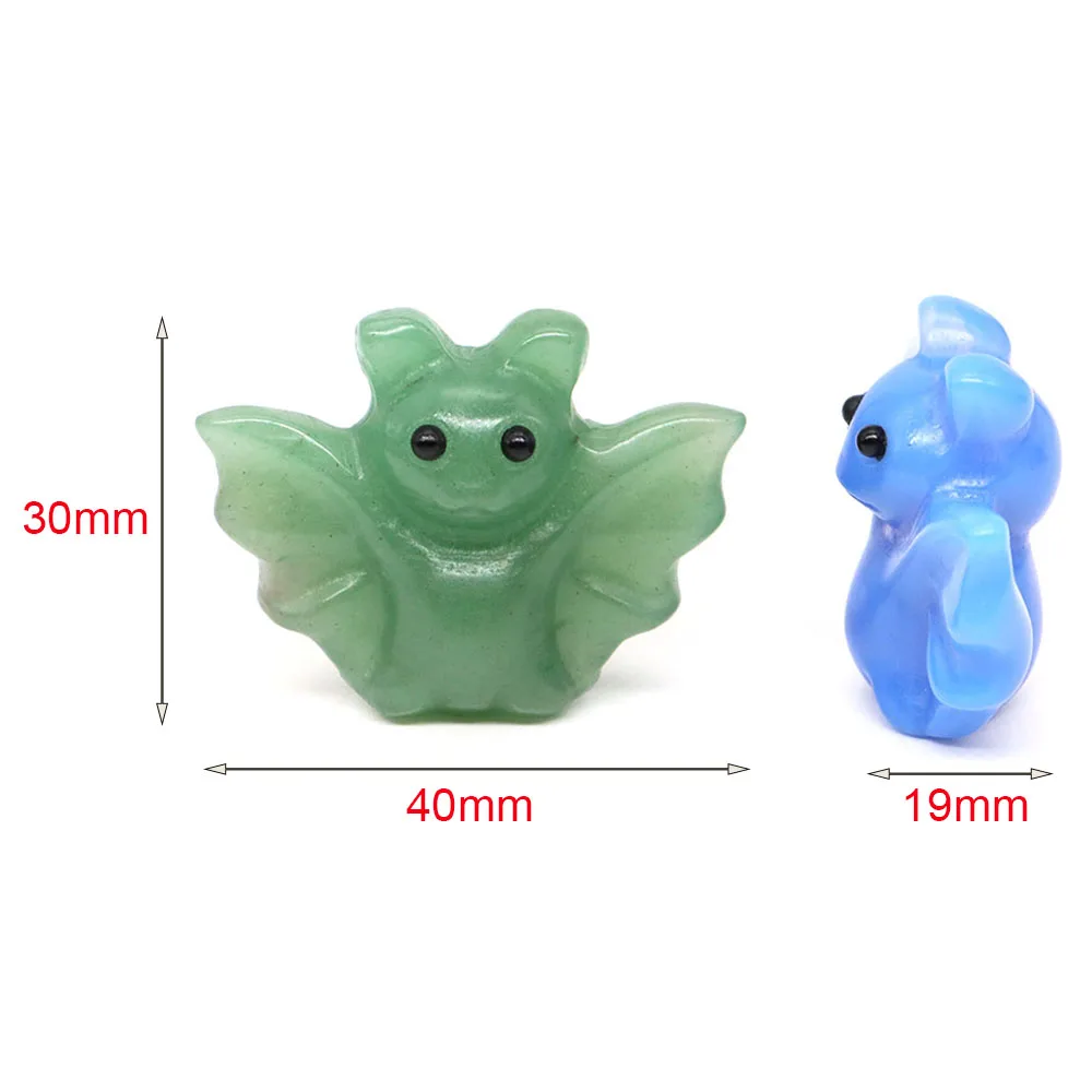 Embrace the mysterious charm of these adorable baby bat carvings. Handcrafted from natural crystal, each piece captures the intricate details and playful essence of bats. Symbolizing intuition, transformation, and rebirth, these carvings are a meaningful and whimsical addition to your collection, décor, or altar space.