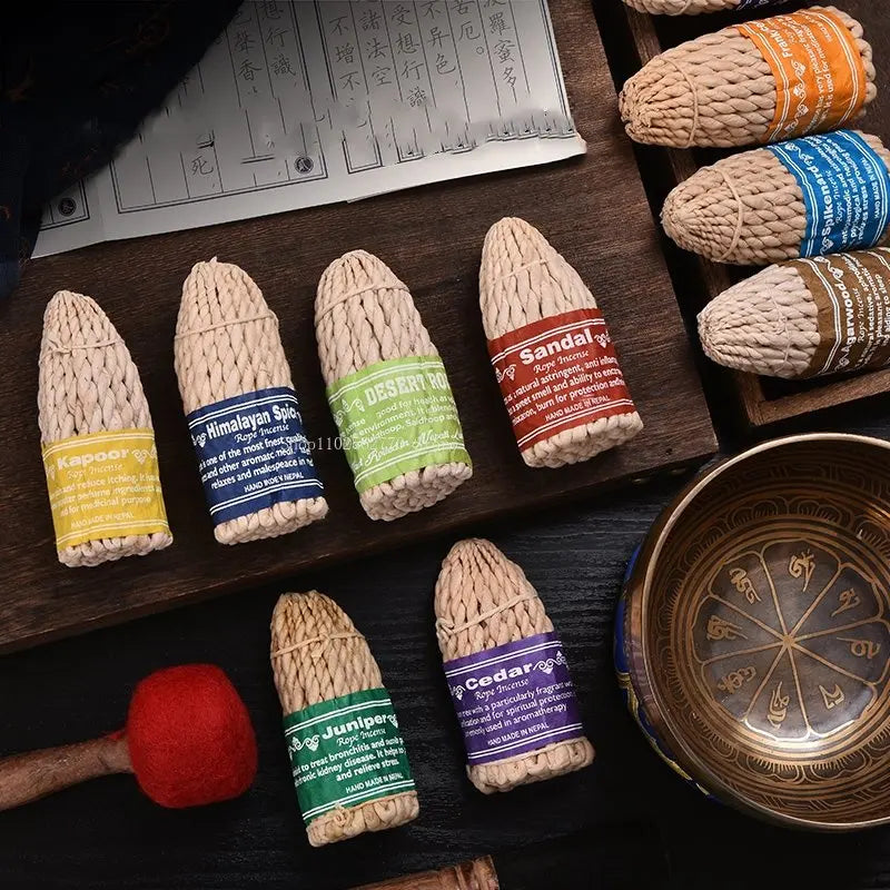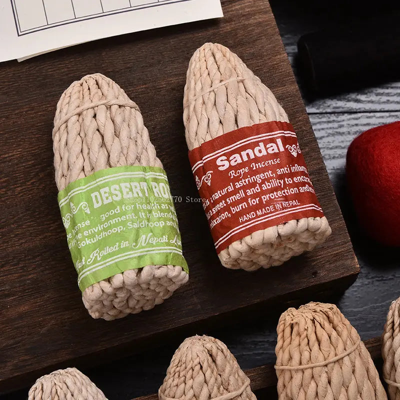 Immerse yourself in the rich, earthy aromas of Nepal Incense Ropes, traditionally handcrafted using ancient techniques. These ropes release deep, grounding scents perfect for meditation, ritual work, or creating a serene atmosphere. Available in packs of 50 and offered in 10 different scents, each rope burns slowly, filling your space with a warm, authentic fragrance rooted in Himalayan tradition. Simply place the rope on a heat-resistant surface or burner, light the end, and let the calming aroma flow. For an added touch, check out the hanging incense burners to create a beautifully dramatic display as the smoke gently drifts through the air.