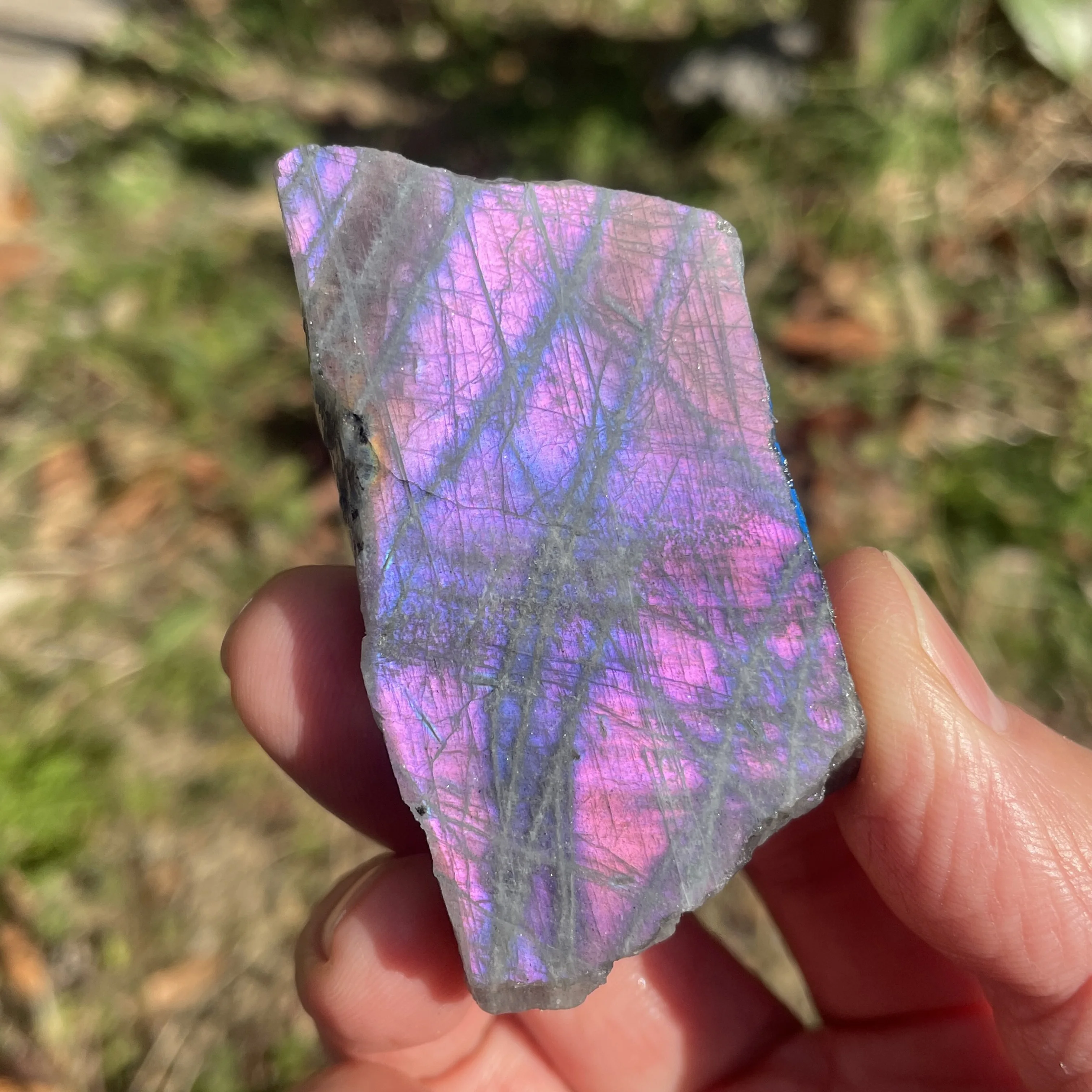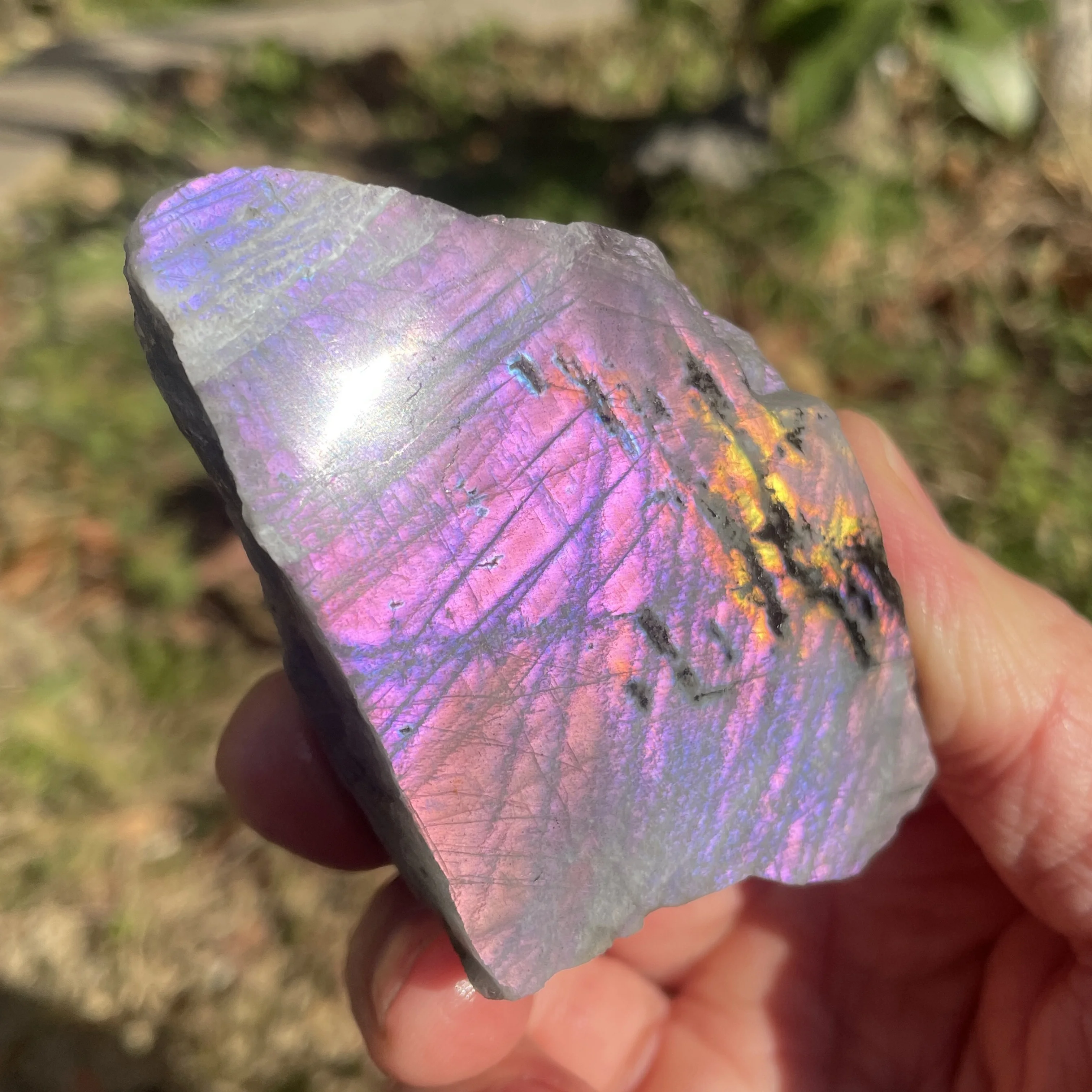 Our Purple Labradorite Slabs showcase the stunning iridescence and mystical beauty of labradorite with a unique purple hue. Known for its protective and transformative properties, these slabs are perfect for use in meditation, energy work, or as a striking decorative piece. Each slab features the signature flash of colors, making each one truly one-of-a-kind.