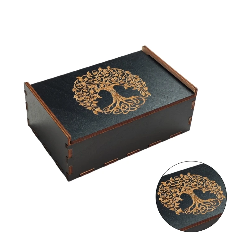 Keep your sacred tools and treasures safe in this beautifully crafted small black wooden altar box. Perfect for storing crystals, herbs, tarot cards, or other ritual essentials, this box is both functional and enchanting. Featuring a sleek black finish, the box is available in various designs, including the timeless Pentagram, mystical Triple Moon, and other magical symbols, allowing you to choose the one that resonates with your practice. Its compact size makes it ideal for travel altars or discreet storage in your sacred space.