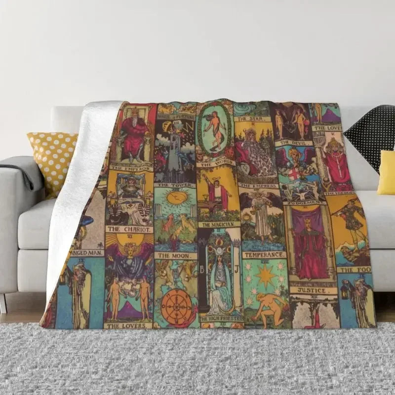 Wrap yourself in magic with the Tarot Fleece Blanket Throw. Available in 6 sizes, this cozy blanket features captivating tarot-inspired designs that bring the mysticism of the tarot to life. Whether you're curled up with a book or lounging in your favourite spot, this fleece blanket provides warmth and comfort while adding a touch of enchantment to your space. Crafted from soft, high-quality fleece, it's perfect for tarot lovers and those seeking a magical, cozy vibe for their home.