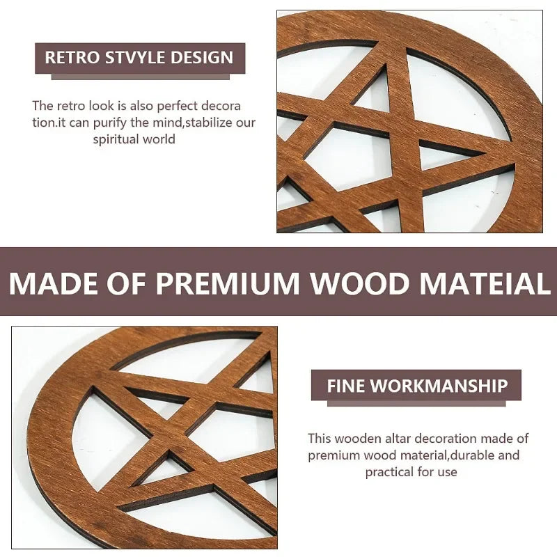 Honor the balance of the elements and the spirit with this beautifully crafted wooden pentagram. A timeless symbol of protection, harmony, and connection, this piece is perfect for enhancing your altar, sacred space, or home décor. Handcrafted from natural wood, its earthy energy makes it a powerful tool for rituals, spellwork, or meditation. Whether displayed as a symbol of your practice or used as a base for candles, crystals, or offerings, this pentagram is both functional and decorative.